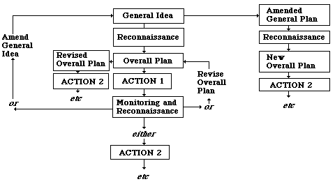 Elliott's model emphasizes constant evolution and redefinition of the original goal through a series of reconnaissances recurring every cycle. The reconnaissance necessarily includes some degree of analysis. This design permits much greater flexibility, and seeks to "...recapture some of the 'messiness' which the Kemmis version tends to gloss [over] " (Hopkins, 1985). Ebbutt further illustrates the evolution of the overall plan through a spiral analogy, as described in Figure 3.