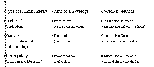 Figure 1. Habermas' Three Domains of Knowledge (after Tinning, 1992)